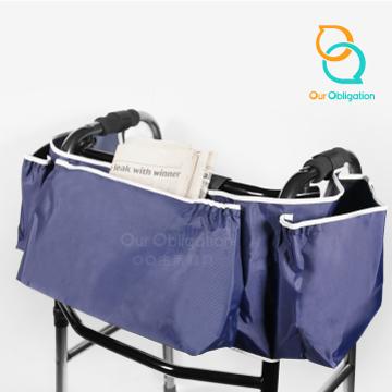 適用於助行器,有三個袋子可放置物品,以黏扣帶固定。