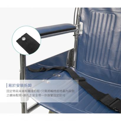 簡易型輪椅安全帶,可固定於輪椅坐墊後方,增加安全性。