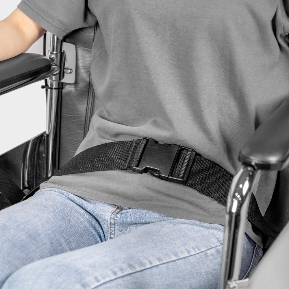 Features簡易型輪椅安全帶,可防止輪椅使用者下滑。
