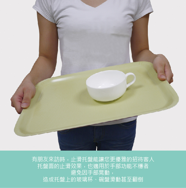 適合手部易顫抖者,具有止滑功能可防止端杯盤時滑動。