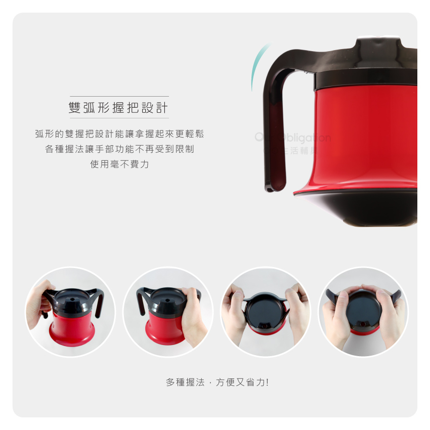 ●雙握把設計,使用毫不費力,給您前所未有的飲用體驗