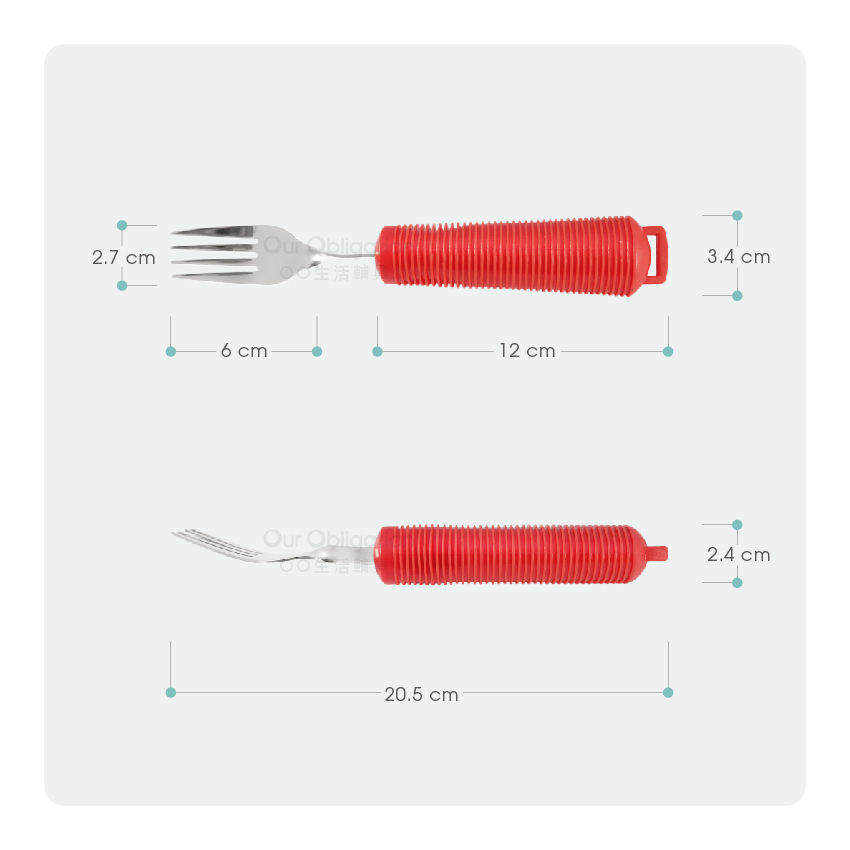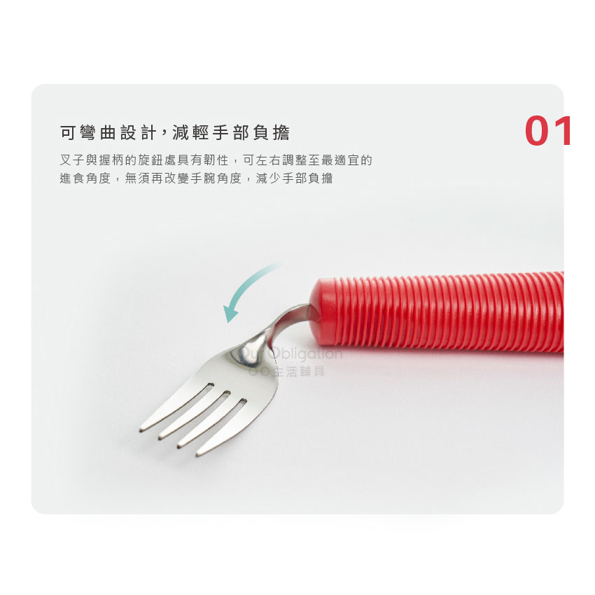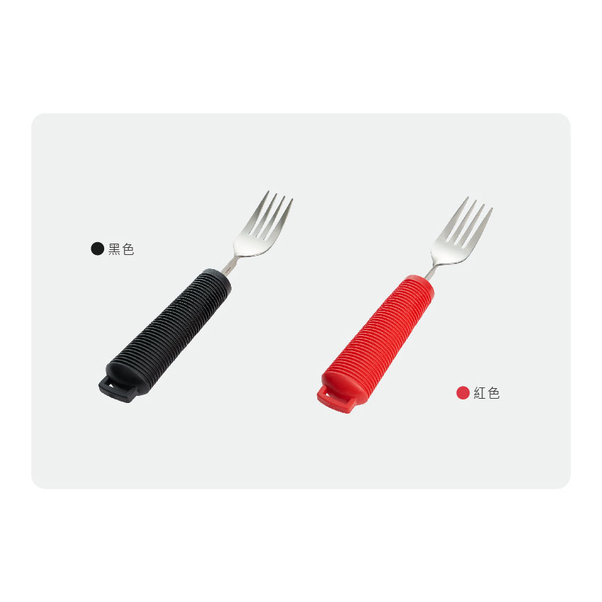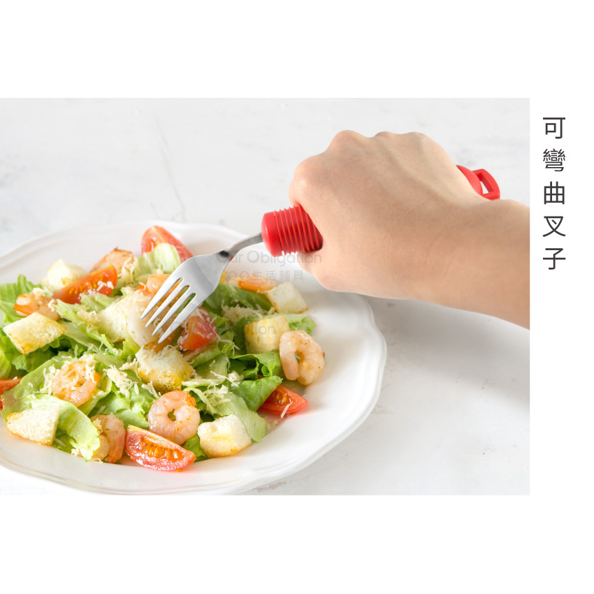 叉子可左右彎曲調整成適合進食角度,幫助使用者獨立進食。