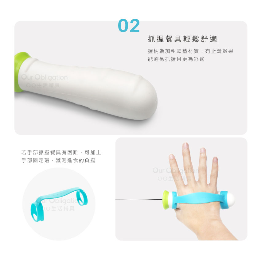 加粗握把設計,附手部固定環讓您輕鬆進食不費力。