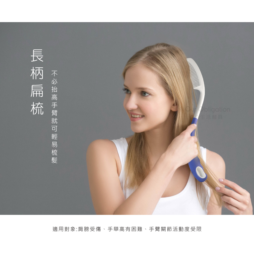 人體工學長握把設計,不需抬高手臂便可輕鬆梳髮。