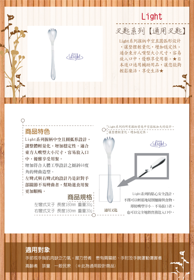 ●輕巧型握柄中空特殊設計,獨立用餐自己來,維持用餐好品質
