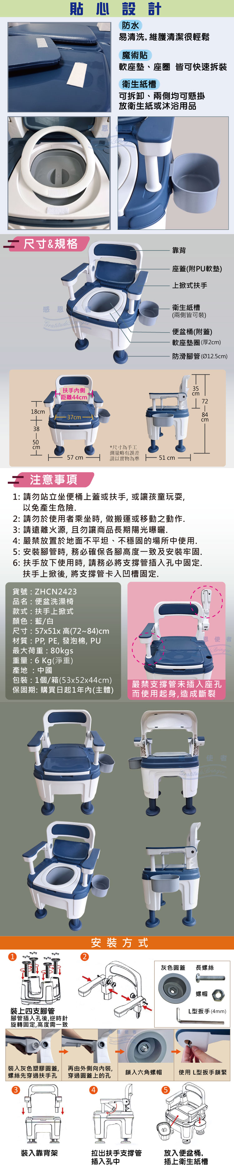 便盆洗澡椅-扶手上掀式 ZHCN2423 點我下載