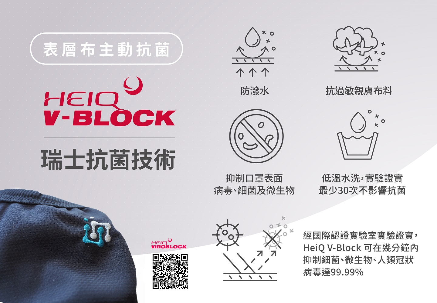 ✩HEIQ 瑞士抗菌技術抑制口罩表面病毒、細菌及微生物。