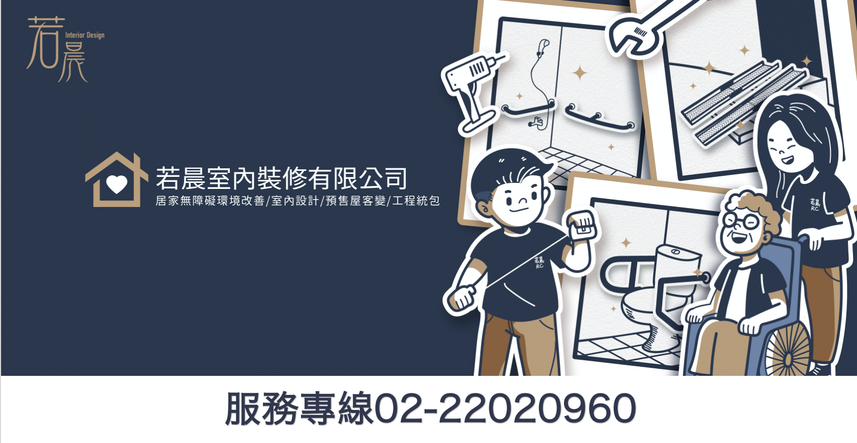 若晨室內裝修有限公司結合『長期照護』與『室內裝修工程』等跨領域之專業,專門為高齡者、身障朋友、退休後族群改造安全的居住空間。
