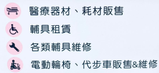 我們是苗栗市在地老店,2代經營繼續服務 輔具販售、專業維修、醫療用品販售、醫療輔具出租、代步車電動輪椅代理及專業維修、補助申請代辦及協助..等服務