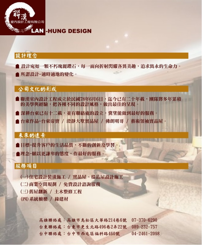 我們絕不會是您比價過的最低點.但我們絕對會是最放心的選擇 以實務室內設計累積的經驗 以藝術與空間美感融合的室內規劃
