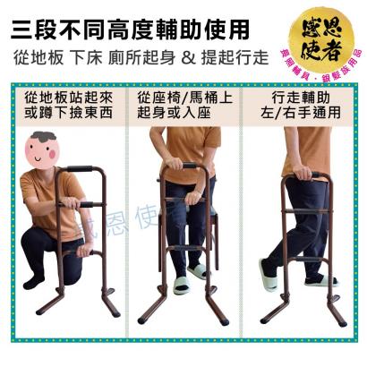 助力起身、輔助上下床、入座,堅固耐用. 居家安全無障礙 三段不同高度輔助,提供各種姿勢起身 八字形架構,穩固安全、日本設計,輕鬆組裝 輕鋁材質,可提起輔助行走