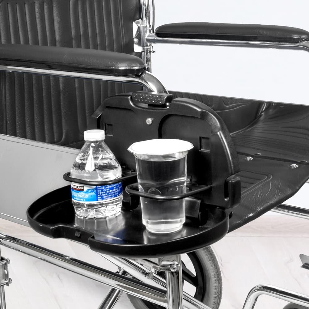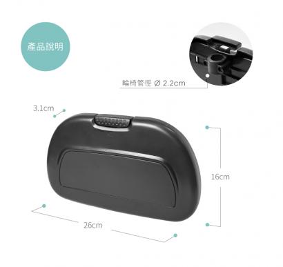 Features只要將此杯架固定於輪椅側邊即可使用,不使用時可往上折收。