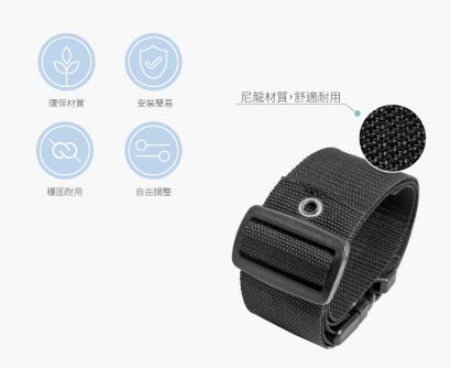 安全帶兩末端有鐵環扣眼,只需將輪椅座椅最內兩側之螺絲鬆開,連同此安全帶一併鎖緊固定即可。