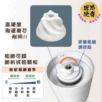 粗細可調整: 研磨成細粉或粗粉 高硬度陶瓷磨芯 更耐用 容量大,一次輕鬆碾碎多種藥片 長柄搖桿轉動流暢 好省力 快拆設計,易於清潔、好收納 輕巧,外出攜帶不占空間