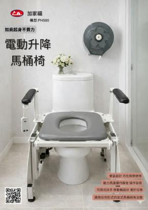 電動升降馬桶椅:能協助長者或行動不便者方便如廁;操作容易(僅上、下兩按鈕)、安全是家中必備之輔助器具;電動昇降裝置協助起身,更加輕鬆安全。可放置於臥室內或馬桶上使用