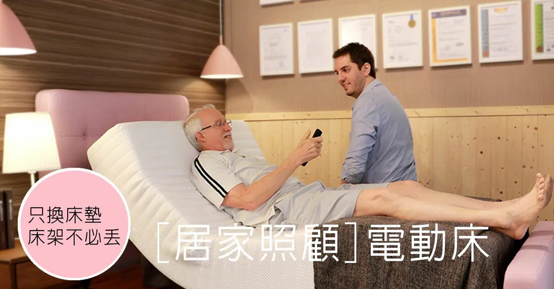 來自德國,古洛奇電動床,床墊式電動床,外觀大小尺寸和一般床墊一樣,採用電動遙控,背板從0°到85°,腿部從0°到50°,自由調整角度。古洛奇領先業界的獨家專利:主動5段關節,唯一「背板有弧度」電動床。2025年再次升級「起身鍵」,一鍵三動作,舒適安全第一首選。居家照顧取代醫療床、醫院床、病床、照顧床、智慧床、老人床。