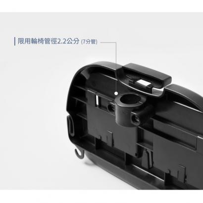 Features只要將此杯架固定於輪椅側邊即可使用,不使用時可往上折收。