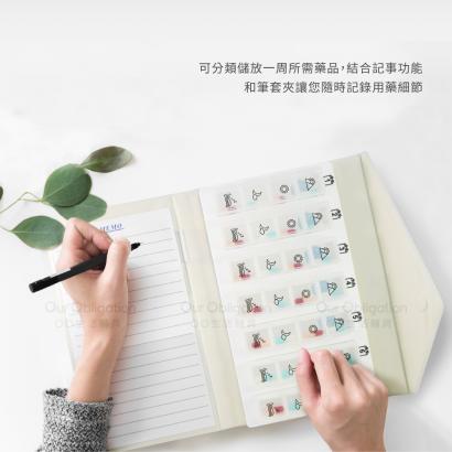 此筆記型週藥盒除了儲放藥之外,還附有記事的功能。若您對產品資訊有任何疑問,歡迎來電(02)2809-1908,將有專人為您服務。