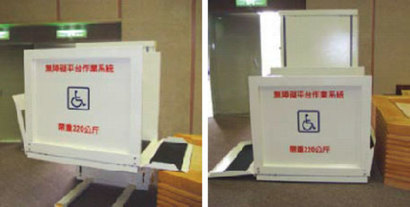 適用於各式舞台及無障礙改善工程,便於作動、機動性高、適用範圍廣。於主機平台下方設置防夾裝置與機組防滑煞車輪,避免人員誤入產生危險。