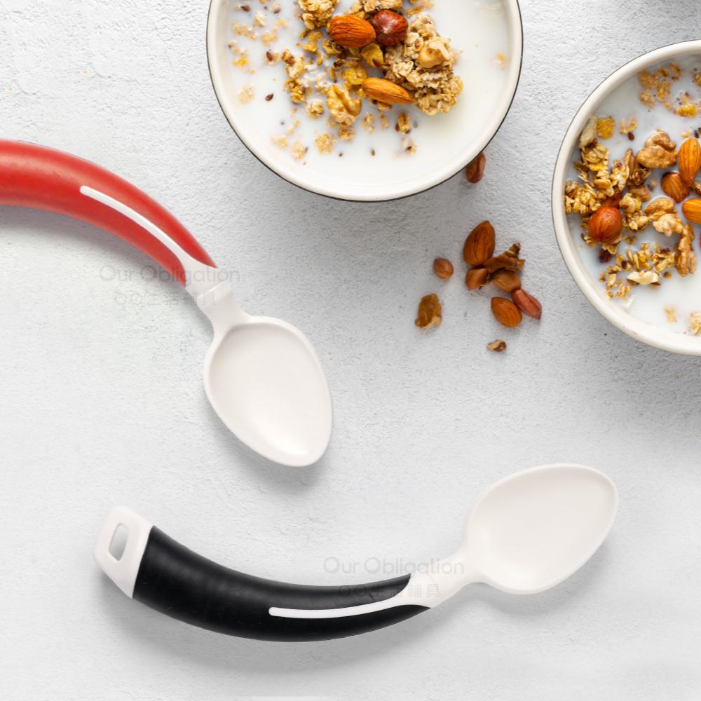 適用對象: 手指握力不佳、手部活動功能有困難的朋友們、銀髮族、學習獨立進食的兒童 貼心彎曲設計,減輕手部負擔 湯匙與握柄的角度,進食更輕鬆 OO生活輔具的彎曲餐具,專門為了手部機能退化或是受限的朋友們所設計 握柄軟墊材質,有止滑效果,不只方便抓握更為舒適 若手部抓握餐具有困難,可另購手部固定環(助握套),享用美食無負擔 用餐時無需再移動手腕角度 讓使用者從碗盤裡拿取食物到將食物送入口中皆能維持相同角度,減少手部負擔 餐具可以輕易配合長者的進食習慣,即使是手指不靈活的長者也能重新找回自信 食品級PP材質,安全無異味 TPR舒適材質包覆柄身,親膚防滑,輕鬆抓握 扁平寬弧的圓潤湯匙 尺寸符合嘴型,食物撈起剛好一口 重量更輕、握把更細 有左手和右手兩種款式供君選購