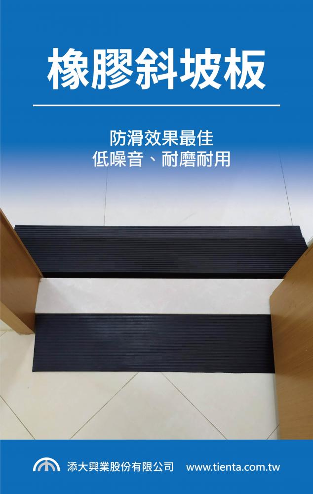 橡膠斜坡板 TTR-90-4.5 [類別] 住家環境 | 斜坡板・斜坡磚 原價 2,200 網路價 2,200 橡膠材質耐磨耐用,使用時噪音低。可自行裁切橡膠坡道所需寬度。 產品特色 產品規格 購物說明 檔案下載 產品特色 Features 適用於室內外高低差較小的門檻 產品規格 Specification ●型號TTR-90-4.5 ●外寬X長X高(CM):90*25*4.5 ●重量:8 kg ●承重:500 kg ●適用高低差:4.5-5.5公分 ●補助項目:非固定式斜坡板A款 購物說明 Product manual 檔案下載 Download 資料來源:添大興業股份有限公司