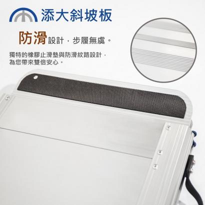 Features1.鋁合金二片式斜坡板方便攜帶放置且不易滑動。