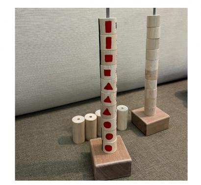 此產品由垂直塔、OT棋和圓柱插棒發想而來,可自行設計彩繪圖案或文字增加操作趣味性,亦可由職能治療師為個案設計專門操作活動,或操作相對位置和數量亦可逐步增加以增加困難性。