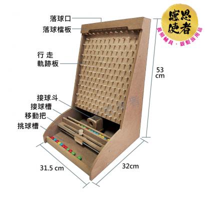 鍛鍊眼力敏銳性, 手部的靈活性,與腦力, 協調共築落點判斷 純木色, 彩色珠子滾動時, 清楚可見. 投入球的速度,可依接球者 接球狀況,自行做調整. ★本產品需自行組裝