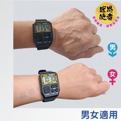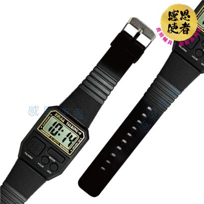 語音報時手錶-矩形 ZHCN2417 視障 盲人 老人 鬧鐘 視覺輔具 [類別] 視.聽.溝通 | 視覺輔具 原價 490 網路價 390 ★專為老人與視障朋友設計,輕鬆一按,立即聽到報時~ 整點語音報時(國語)、一鍵報時 鬧鐘提醒(6種音樂)、貪睡功能 語音清晰響亮、數字顯示 12小時制、視障者及老人適用 產品特色 產品規格 購物說明 檔案下載 產品特色 Features 產品規格 Specification 貨號 : ZHCN2417 品名 : 語音報時手錶-矩形 尺寸 : 23.5x3.5x1.2cm 適用手腕周長: 14-20cm 材質 : 塑膠、不鏽鋼、電池 重量 : 29g 顏色 : 黑色 包裝 : 1只/盒 產地 : 中國 保固期: 自購買日起一年內 *此款無防水功能* 機芯種類: 電子 鏡面: 塑料鏡面 錶帶: 塑膠 錶殼: 塑膠、不鏽鋼(錶蓋) 錶扣: 針扣型 購物說明 Product manual 檔案下載 Download 名稱 簡述 連結 語音報時手錶-矩形 ZHCN2417 檔案下載 資料來源:日華國際有限公司