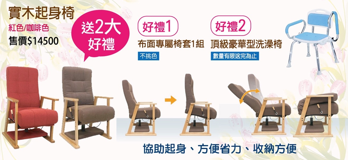 ③ 買「實木起身椅」送頂級豪華型洗澡椅+實木起身椅椅套 (至5/13截止) http://pcse.pw/722F2
