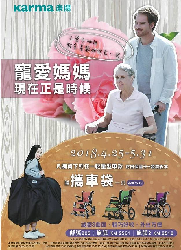 指定輪椅車款送「攜車袋(市價750)」(至5/31截止)