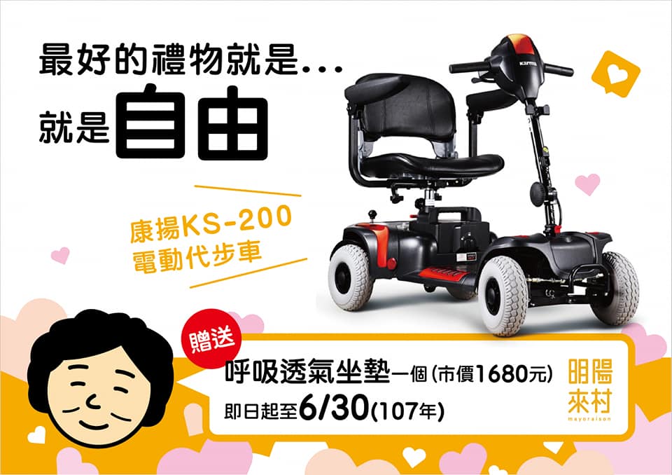 指定電動代步車款送「呼吸透氣坐墊(市價1,680)」(至6/30截止)