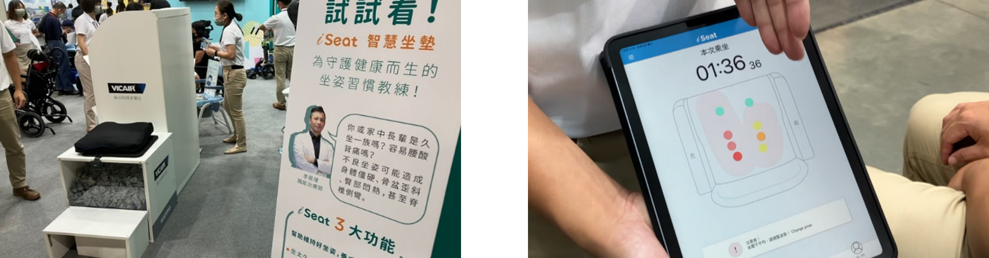 康揚新推出的iSeat ,主打能以提示聲提醒使用者坐姿不正確,更可以從APP中可視化直接得知壓力分佈點,還可以設定久坐提醒時間,讓上班族不再會因為專心工作而忘記起身活動。iSeat更重要的價值在於可以利用智能蒐集數據,方便機構服務人員觀察長期臥躺的病友的坐姿數據,以正確的即時調整練習時坐姿,並練習加長坐的時間,藉此減少照護者的負擔。