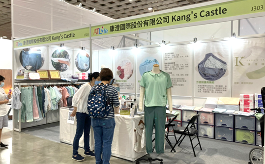 第三站來到康澄,Sandy這一路的探索之旅,首次遇到跟照護服飾相關的廠商,替攤位攝像紀錄時,第一眼就發現展示架上的照護服飾,每一條拉鍊位置、每一處衣服的折疊位置,細膩到我一度以為康澄創辦人是服裝科系相關起家的,一問之下才得知竟然是護理師!