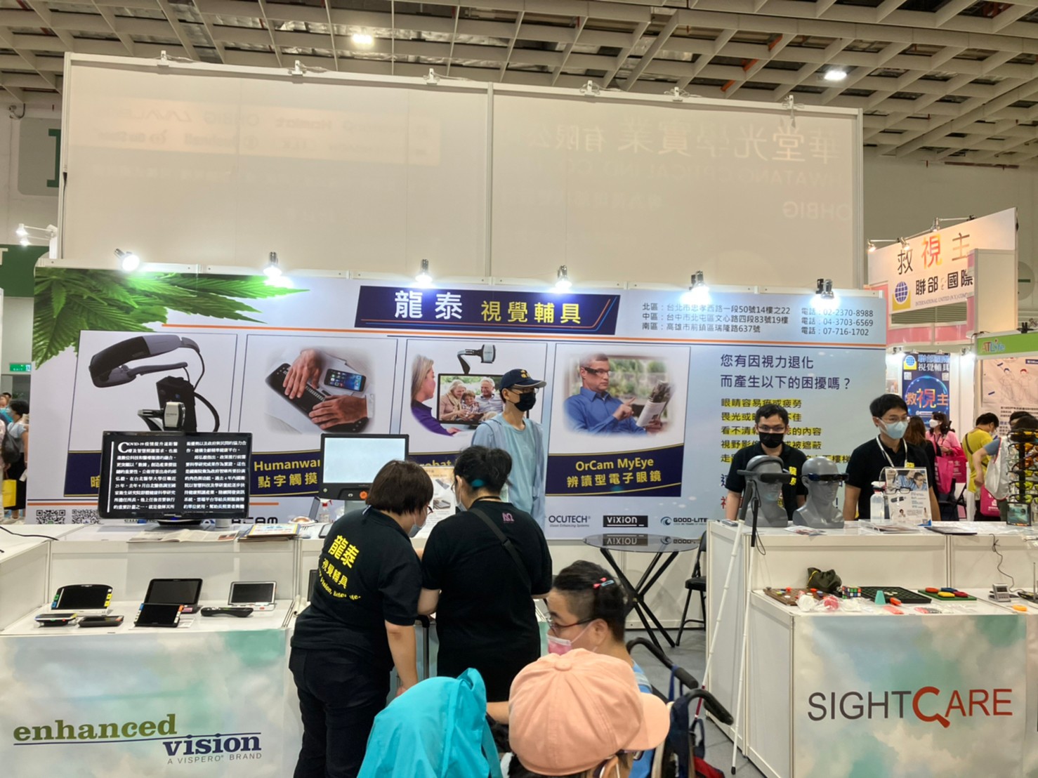 第四站龍泰,站在人來人往的人群中,龍泰的工作人員們帶著像VR一樣的眼鏡細心地介紹著產品的每個細節,因為其獨特的外型,令我對它的功能十分的好奇,還有放在桌上的鍵盤和各類益智玩具,讓沒接觸過視覺輔具的Sandy的更想進去一探究竟。