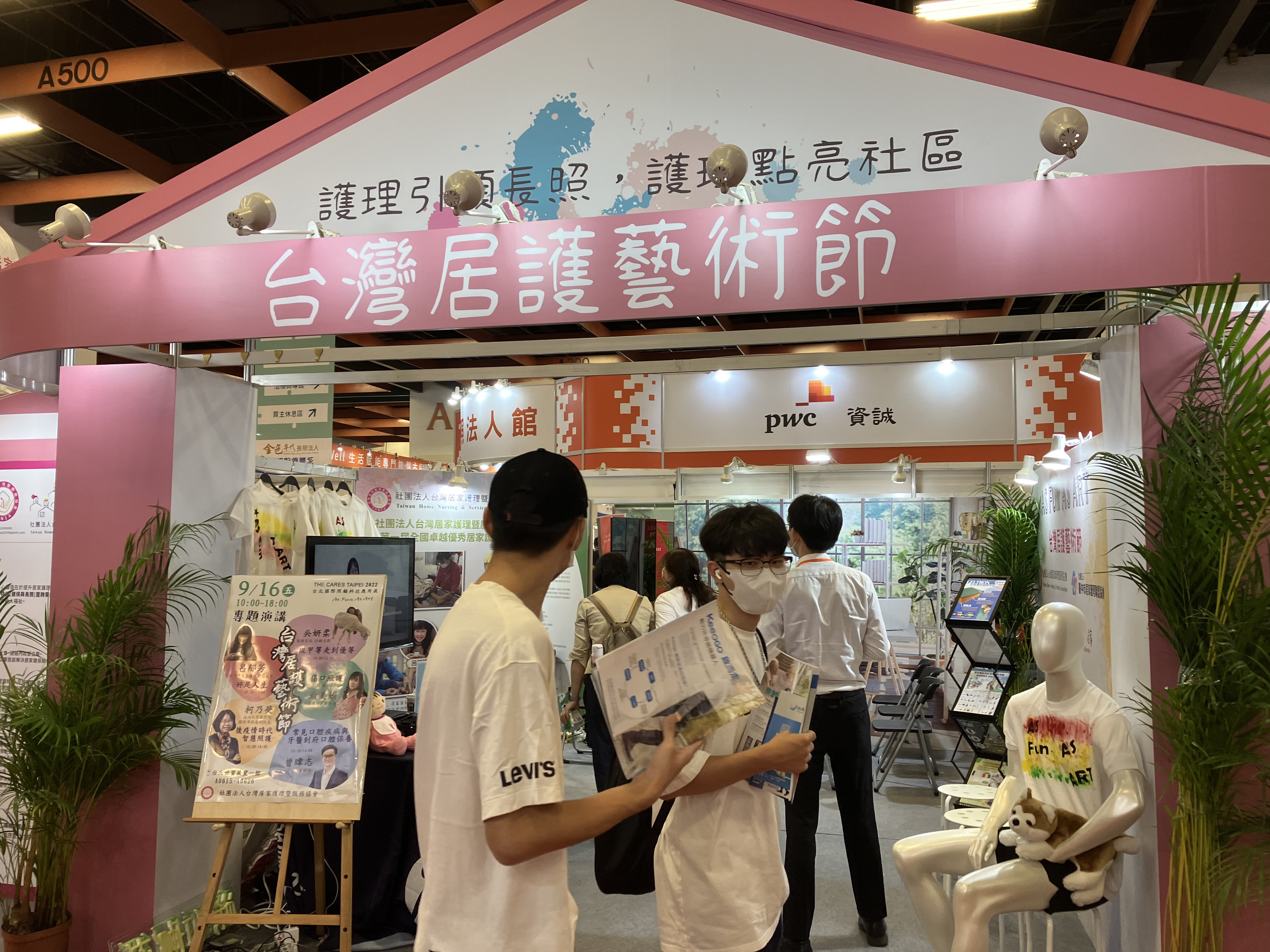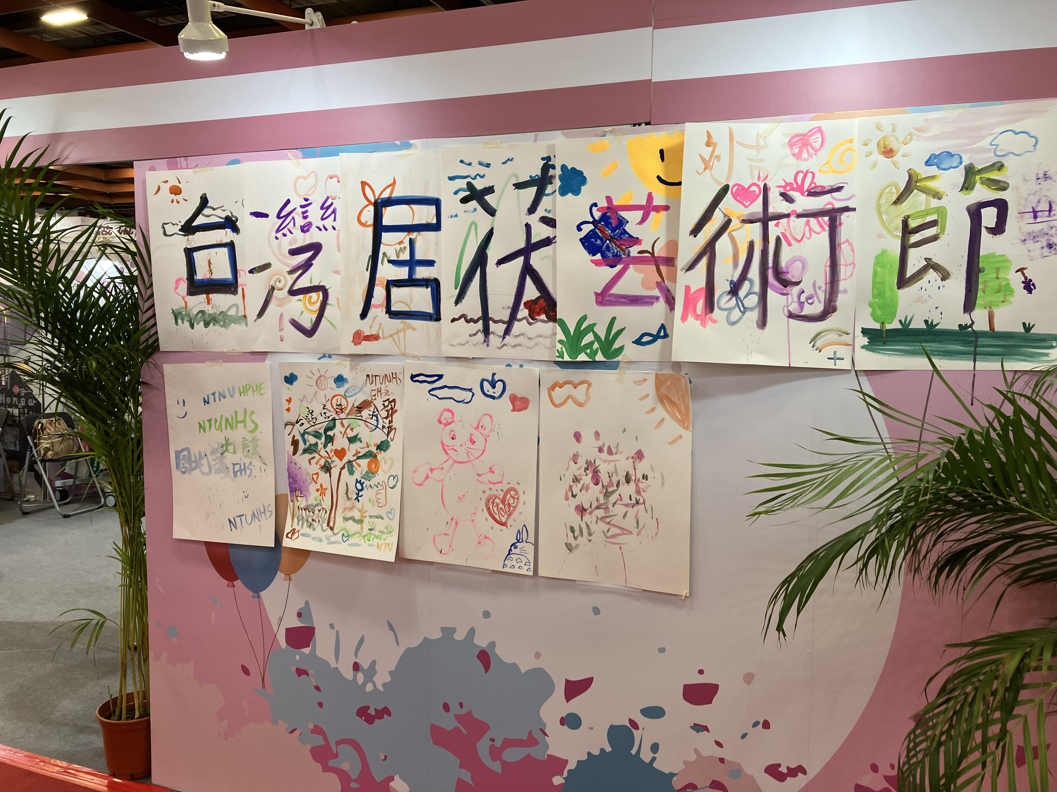 本次展場共有九大主題館、七大展區,並且有多場論壇會議和治療師們的主題分享。位在護理專業主題館的「和鄰居家護理所」,聯合其他4家居護所整合展出,從展區入口的粉色招牌「台灣居護藝術節」,Sandy就可以感受到屬於居護繽紛且龐大的宇宙能量,在走近一點探索,現場有扭蛋的小遊戲,更有繪畫的小活動,很多工作人員穿著自己畫的T-shirt在會場來回穿梭,燦爛與活力的光芒照耀著台灣居護藝術節展區。