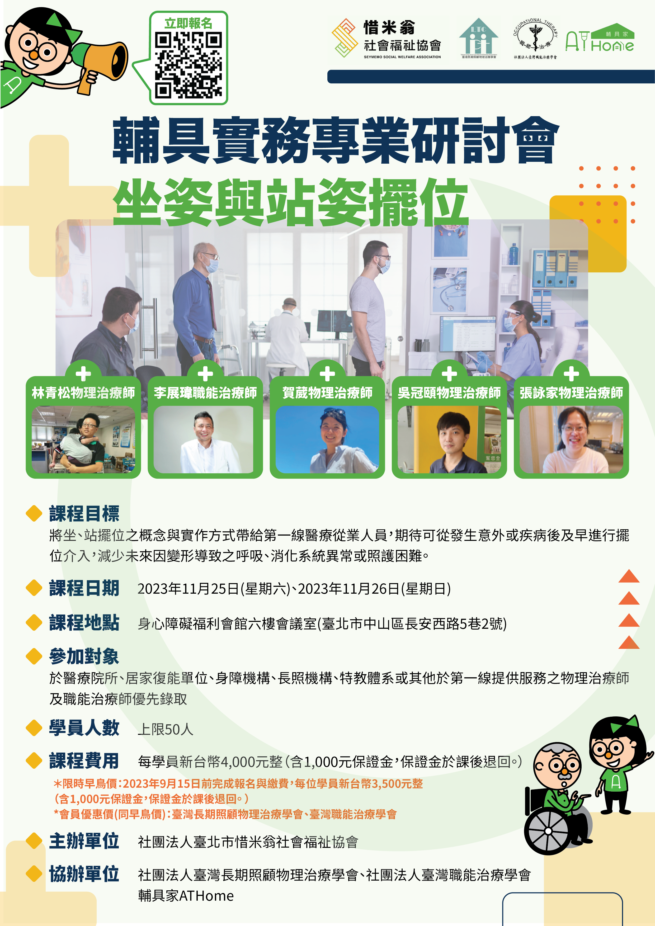 【限定醫療專業人員】 輔具實務專業研討會-坐姿與站姿擺位