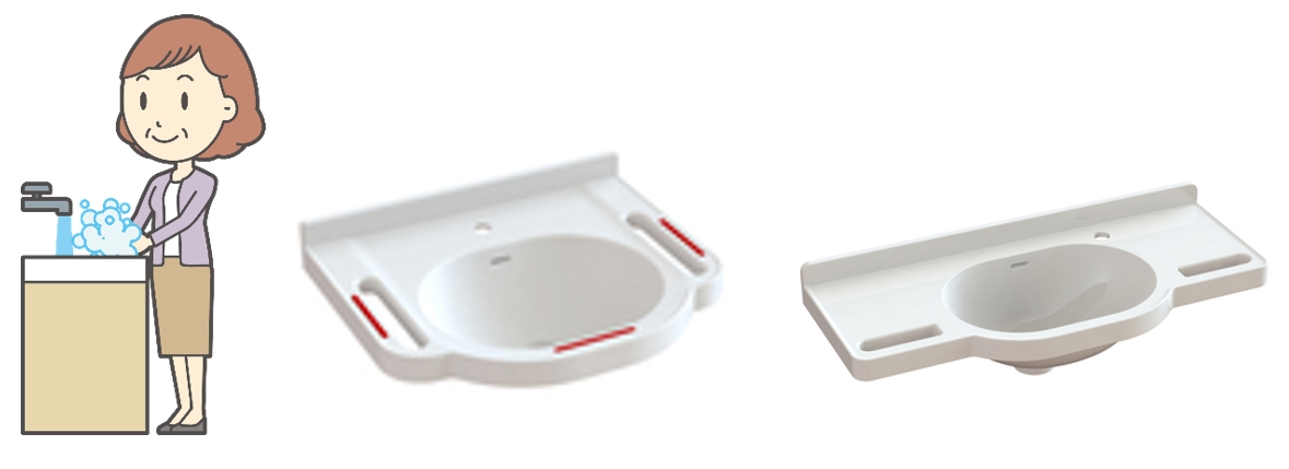 台灣最普遍的洗手台的款式為獨立立柱式設計,但由於底座立柱的設計並非以安全承重為考量,因此許多家人為了長輩的使用安全,會在兩旁再加上『環形扶手』,這確實是一種補強改良的方式,但有許多家庭因為顧及外觀與使用舒適度,依舊不願意安裝洗手台環形扶手,長輩直接將重量壓在無堅固底座支撐的洗手台上,導致壓垮洗手台的危險風險。針對這類型的家庭,若是在設置的一開始,就考慮長期的安全支撐與使用需求,家人其實可以選擇與浴室環境更完美融合的『坎入式洗手檯座』(站立姿適用),或是『強化版扶手與洗手台合一』的這類獨特新型設計(洗澡椅坐姿進入也適用),兼顧長輩穩固支撐與美觀的身體及心理的使用需求。