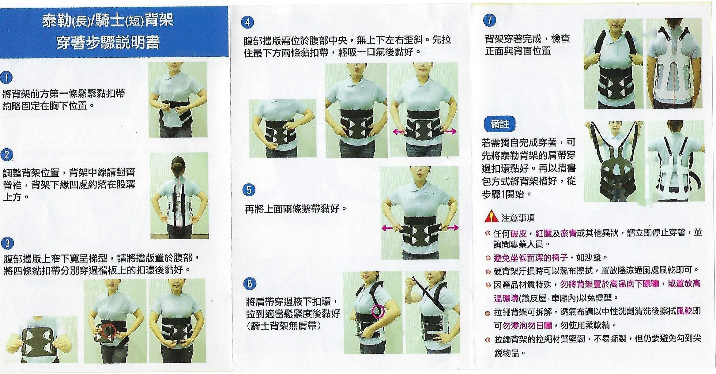 2.穿著背架時,請穿於棉質內衣外,以防皮膚過敏