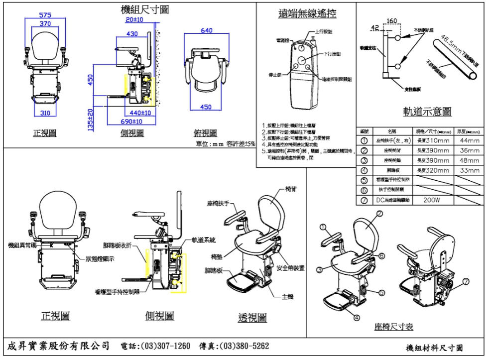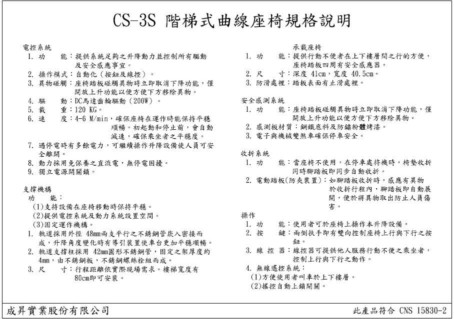 CS-3S樓梯升降椅 適合任何轉彎型之樓梯、雙軌304不鏽鋼軌道、配有各樓層無線呼叫器 點我下載