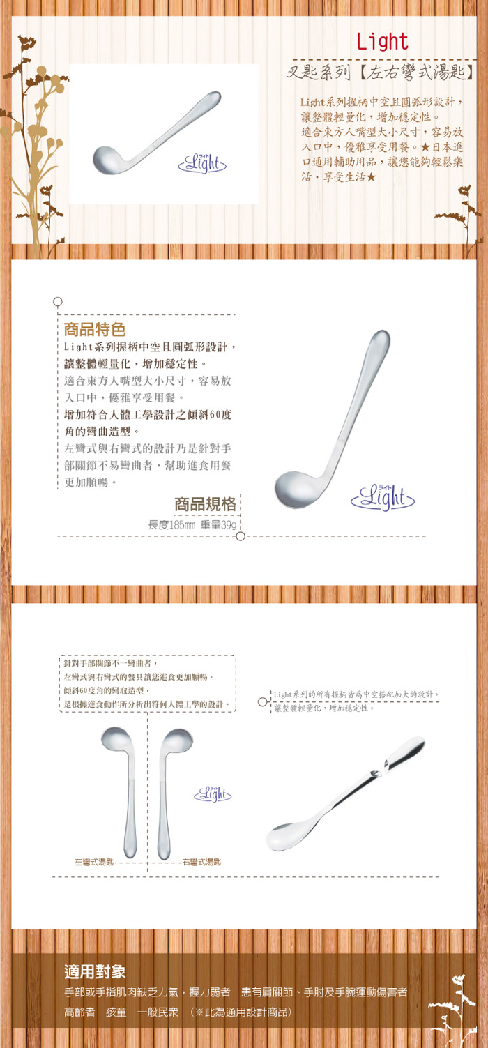 ●輕巧型握柄中空特殊設計,獨立用餐自己來,維持用餐好品質