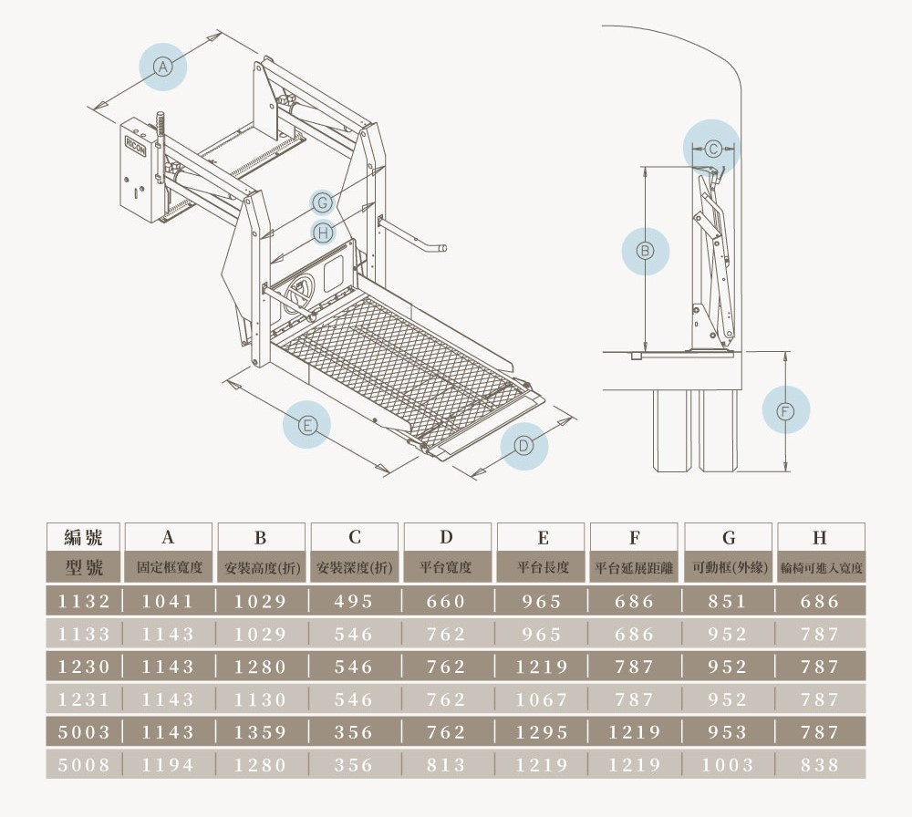 符合美國ADA身障協會認證;線控器及扶手操作開關,輪椅使用者可自行操作;獨特重力安全開關,防止有人尚未進開輪椅平台前,平台無法作動;安全平穩,市佔率第一