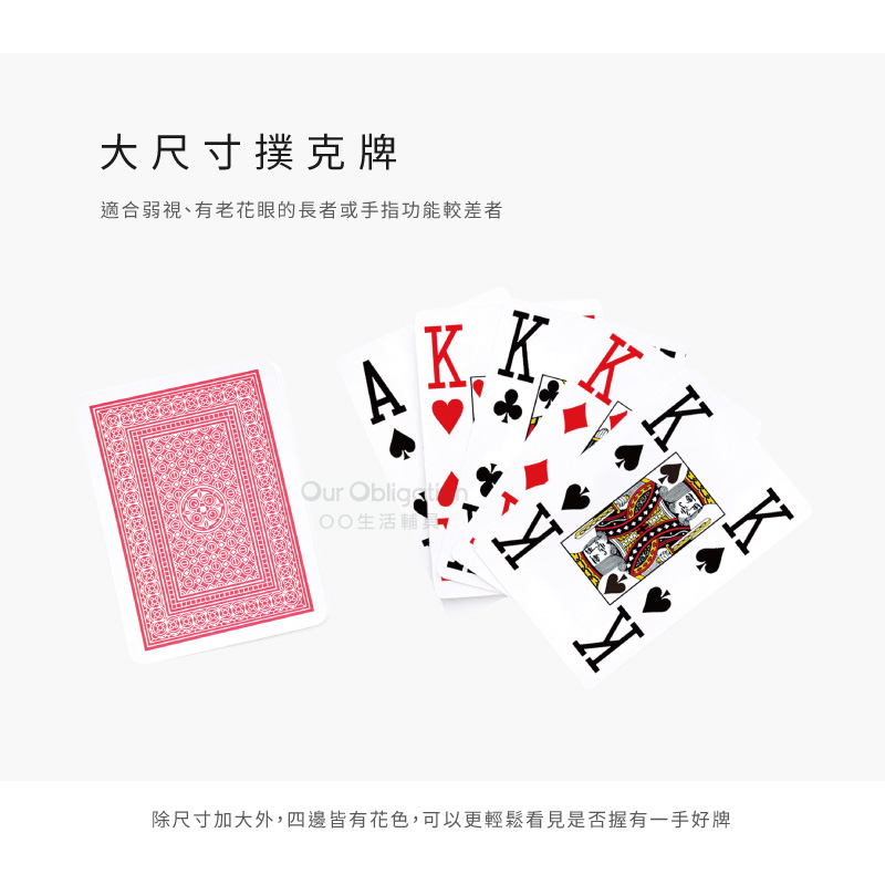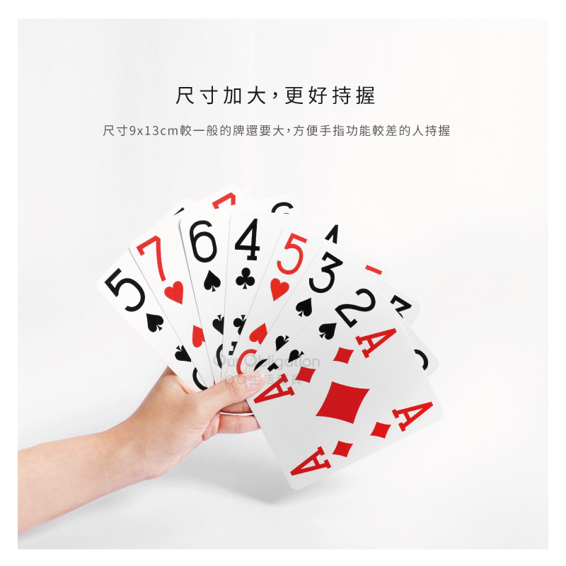 ●加大的紙牌大小和數字