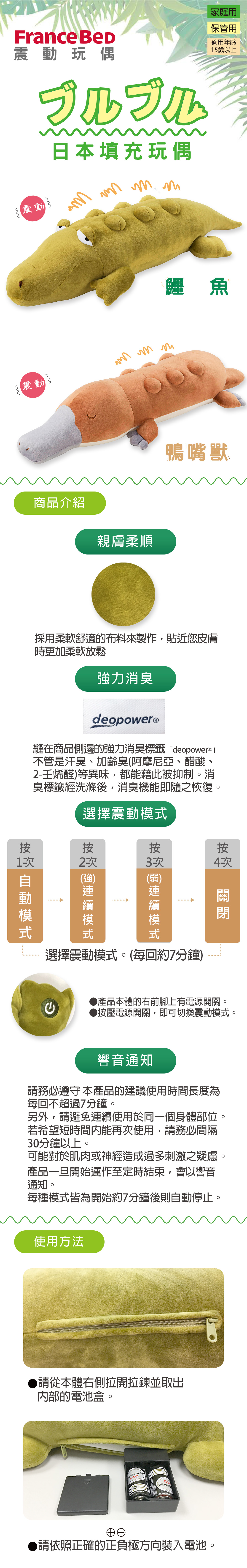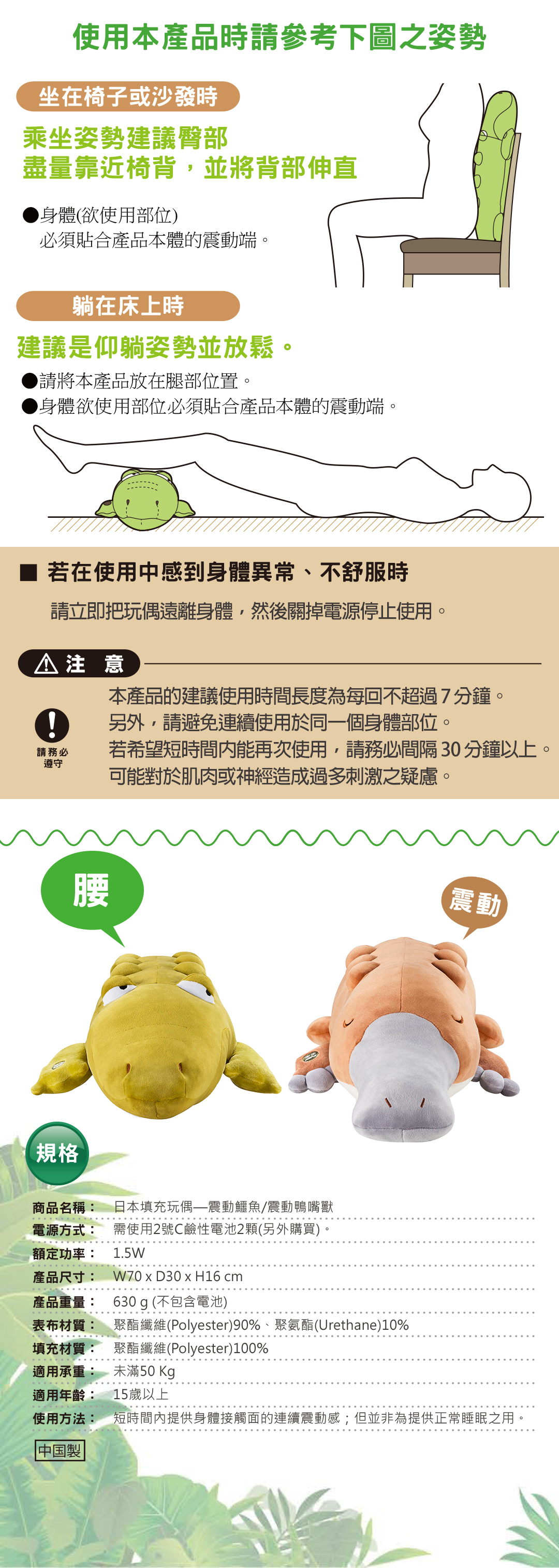 商品名稱:日本填充玩偶—震動鱷魚/震動鴨嘴獸