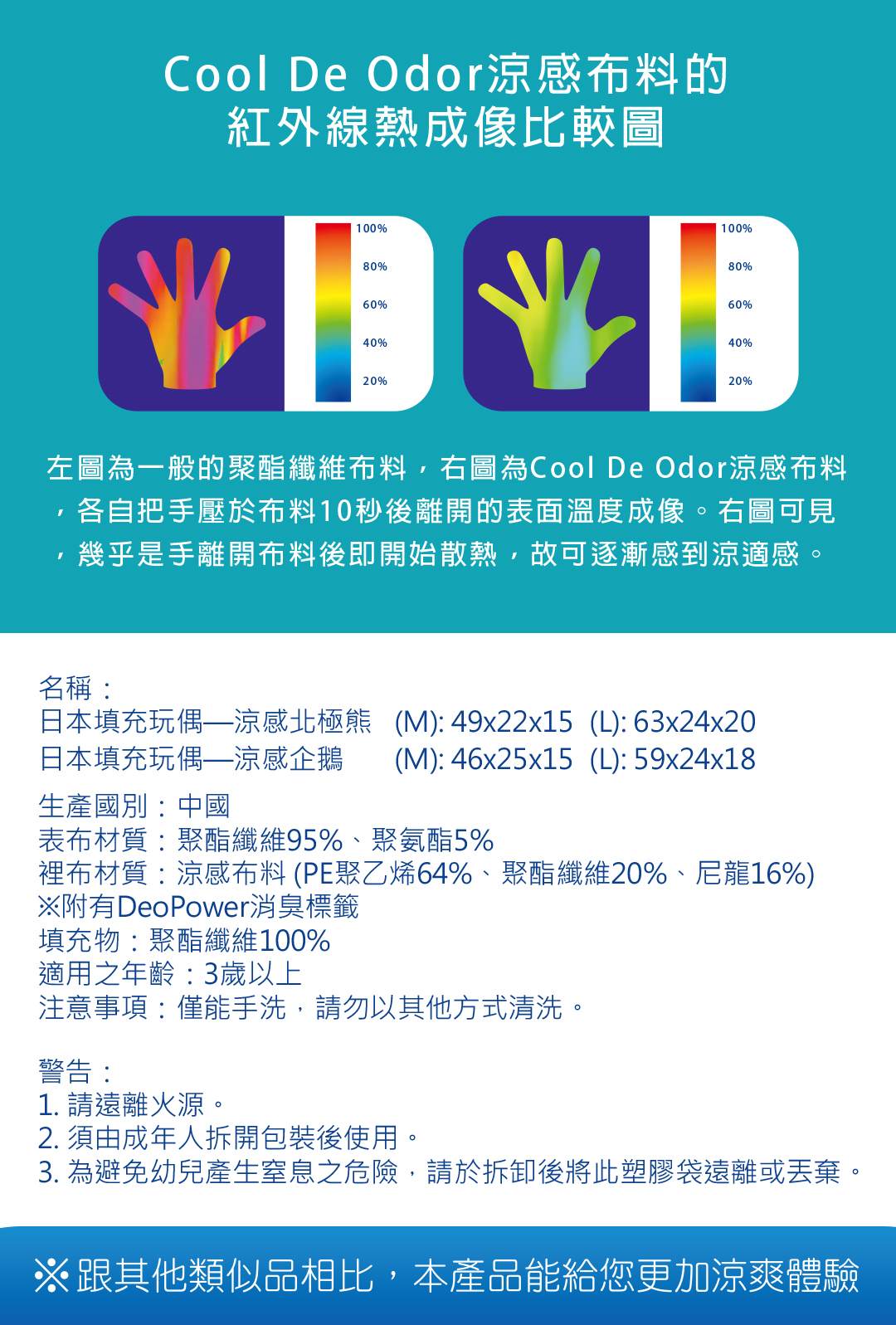 裡布材質:涼感布料 (PE聚乙烯64%、聚酯纖維20%、尼龍16%)