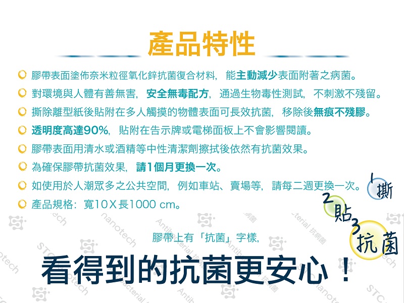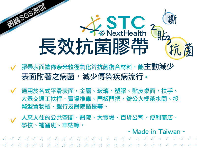 4.膠帶表面印刷STC LOGO是為讓您更好辨別抗菌面。