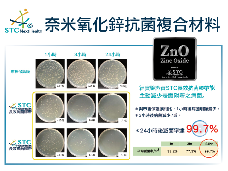 *膠帶表面塗佈奈米粒徑氧化鋅複合抗菌材料,能主動有效減少表面附著之病菌。