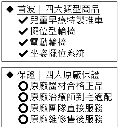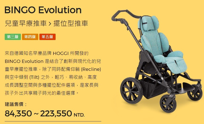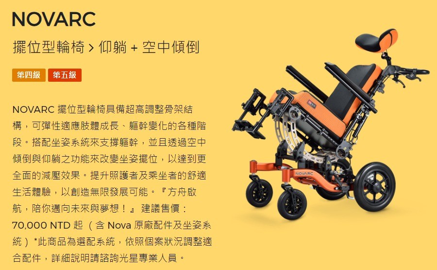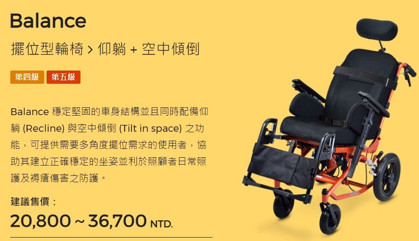 ★四大類型商品: 兒童早療特製推車、擺位型輪椅、電動輪椅、坐姿擺位系統