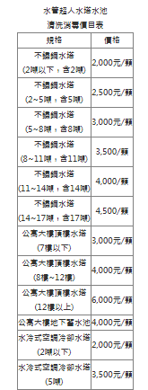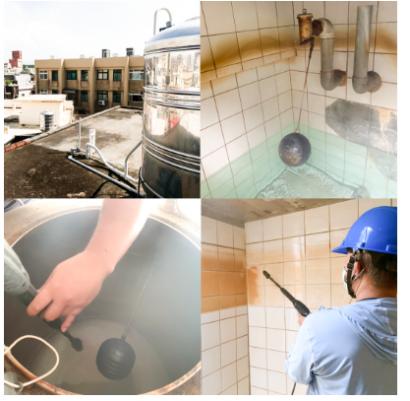 水管超人水塔、水池清洗特色 1.高壓清洗機清洗、手動刷洗,依照不同環境選擇適合工具 2.刷洗當中不加入任何化學藥劑 3.水池、蓄水池人員遵守工安標準入池清洗 4.清洗水塔後,相關閥件檢查確認 5.異物清洗、清除後不留在頂樓造成排水管汙染 6.清洗前後提供照片及報告、清洗證明 7.水池水塔清洗後進行高濃度氯溶液消毒 8.消毒後進行水質採樣量測,pH、TDS、餘氯測試 9.搭配水管清洗超優惠