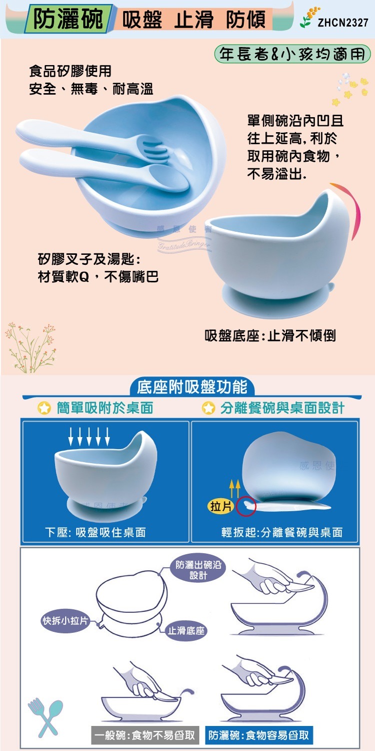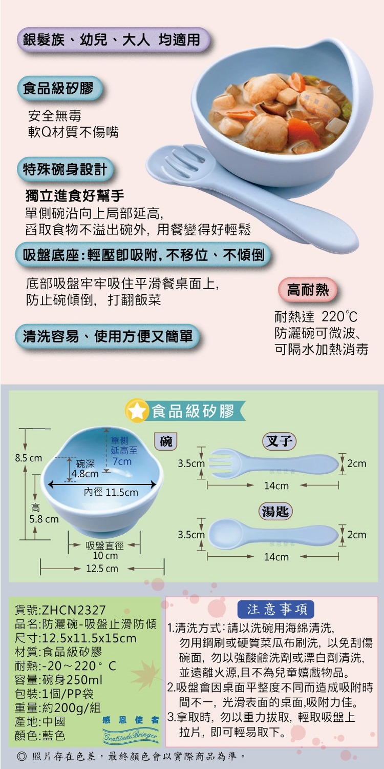 | 矽膠止滑防灑碗 ZHCN2327 (一組) | 吸盤底座 防傾倒 特殊碗 | 點我下載 |